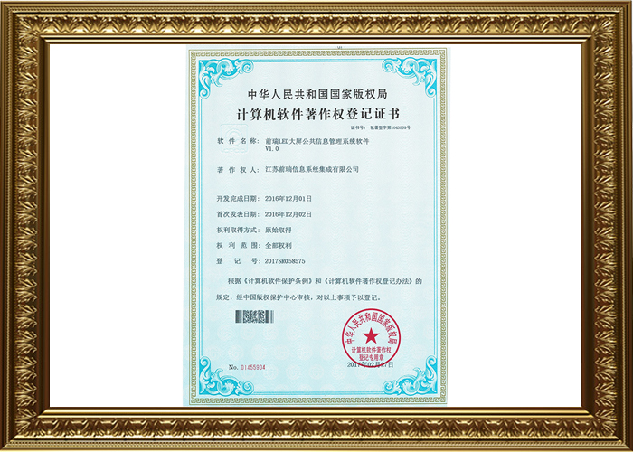 前瑞LED大屏公共信息管理系統(tǒng)軟件著作權(quán)